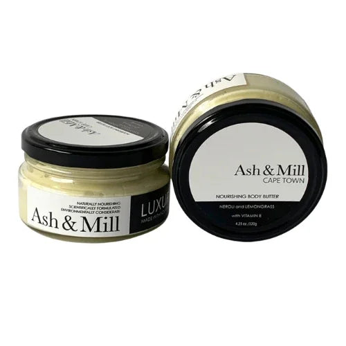 Ash & Mill's nourishing body butter is formulated to melt at your skin's temperature. Containing nourishing shea butter, cocoa butter, coconut oil, jojoba oil, baobab oil, vitamin E and essential oils, this body butter absorbs quickly leaving your skin feeling soft and hydrated.