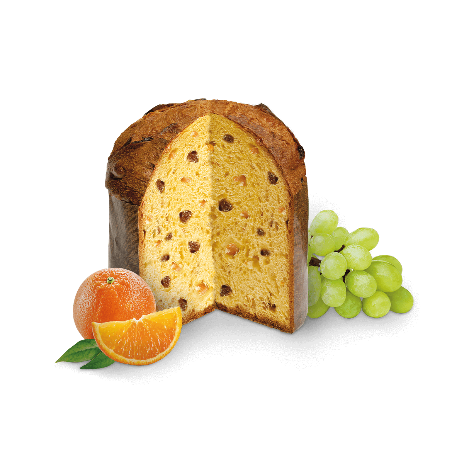 Ingredients: Wheat flour, raisins (19%), butter (milk), sugar, fresh egg yolk, natural yeast (wheat), candied orange peel (6%) (orange peel 53%, glucose-fructose syrup, sugar, acidity regulator: citric acid), emulsifier: mono and diglycerides of fatty acids of vegetable origin, invert sugar, salt, natural flavours. Contains: wheat, milk, eggsMay contain traces of soy and other nuts.