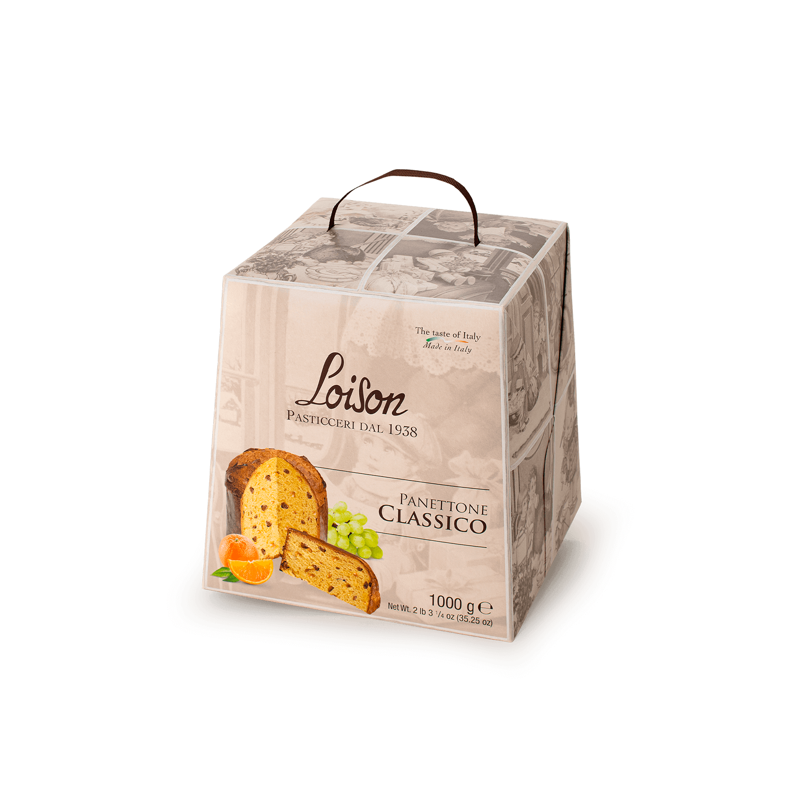 This classic Panettone is bursting with raisins and candied peel. Its crumb is soft and moist, and it is heavily perfumed with fruits and spices. Presented in a little box, which is covered with beautiful decoration, it is the ideal gift to offer for Christmas!