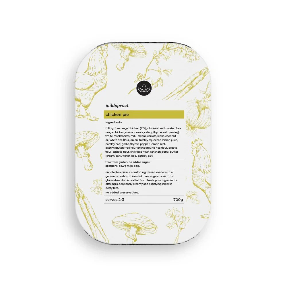 Our chicken pie is a comforting classic, made with a generous portion of roasted free-range chicken. This gluten-free dish is crafted from fresh, pure ingredients, offering a deliciously creamy and satisfying meal in every bite. No added preservatives.