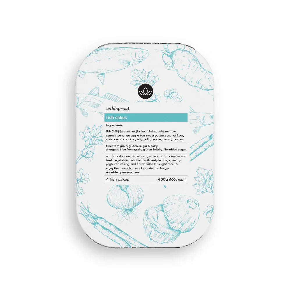 Ingredients: fish (44%) (salmon and/or trout, hake), baby marrow, carrot, free-range egg, onion, sweet potato, coconut flour, coriander, coconut oil, salt, garlic, pepper, cumin, paprika.
